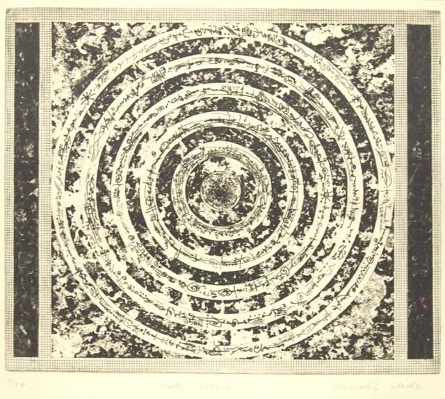 混沌とした空間をディープエッチングで、その中の様々な要素を文字のようなモチーフで表現しています。
