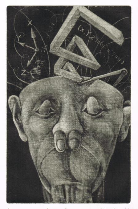 トポロジーという幾何学をパロディーにした銅版画作品です。