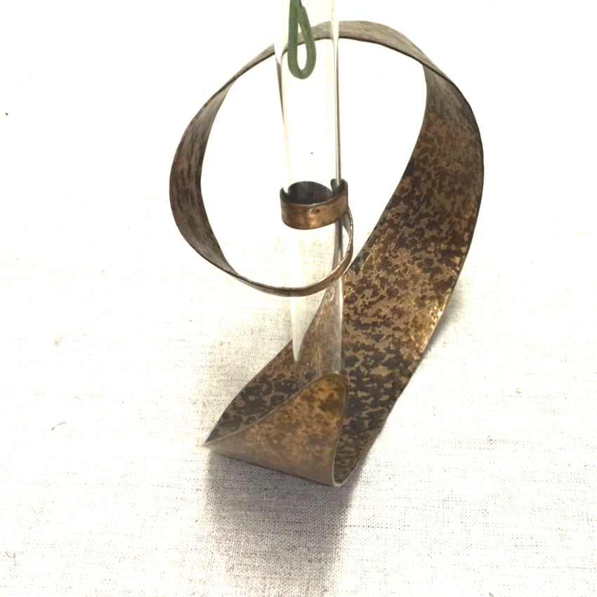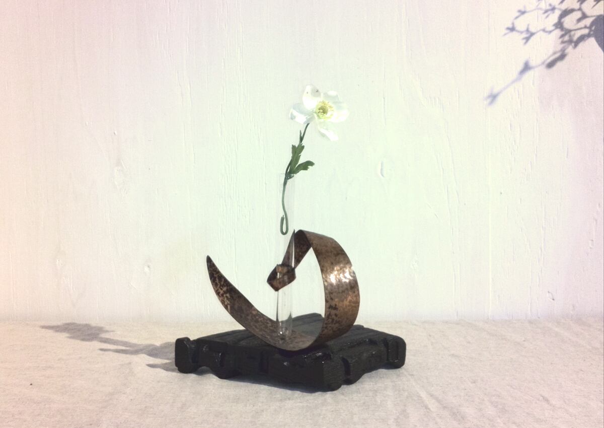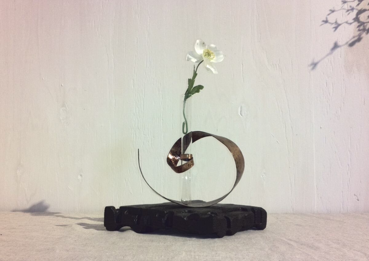 銅を金槌で丹念に叩ききだして、滑らかな曲線を造形した一点物の一輪挿しです。