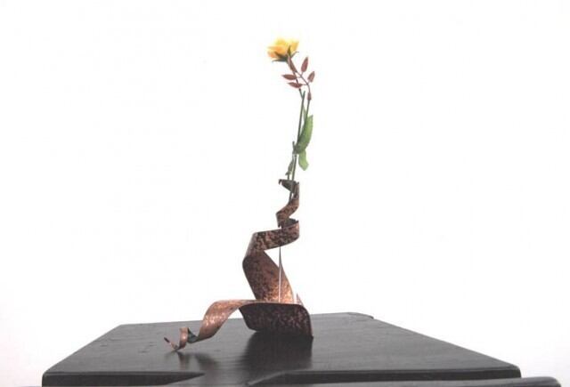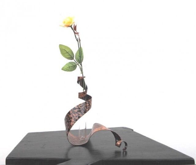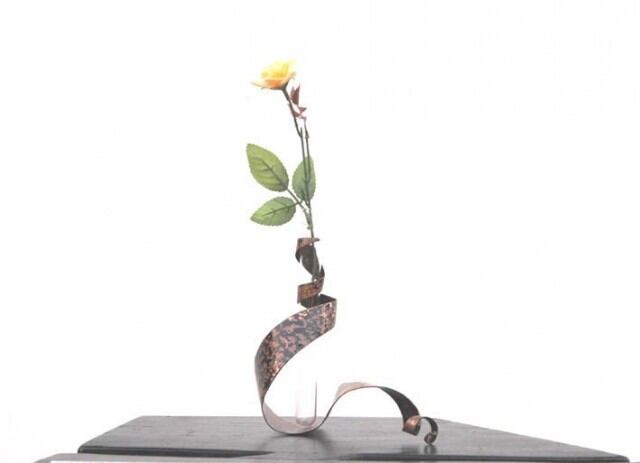 銅を金槌で丹念に叩ききだして、滑らかな曲線を造形した一点ものの一輪挿しです。